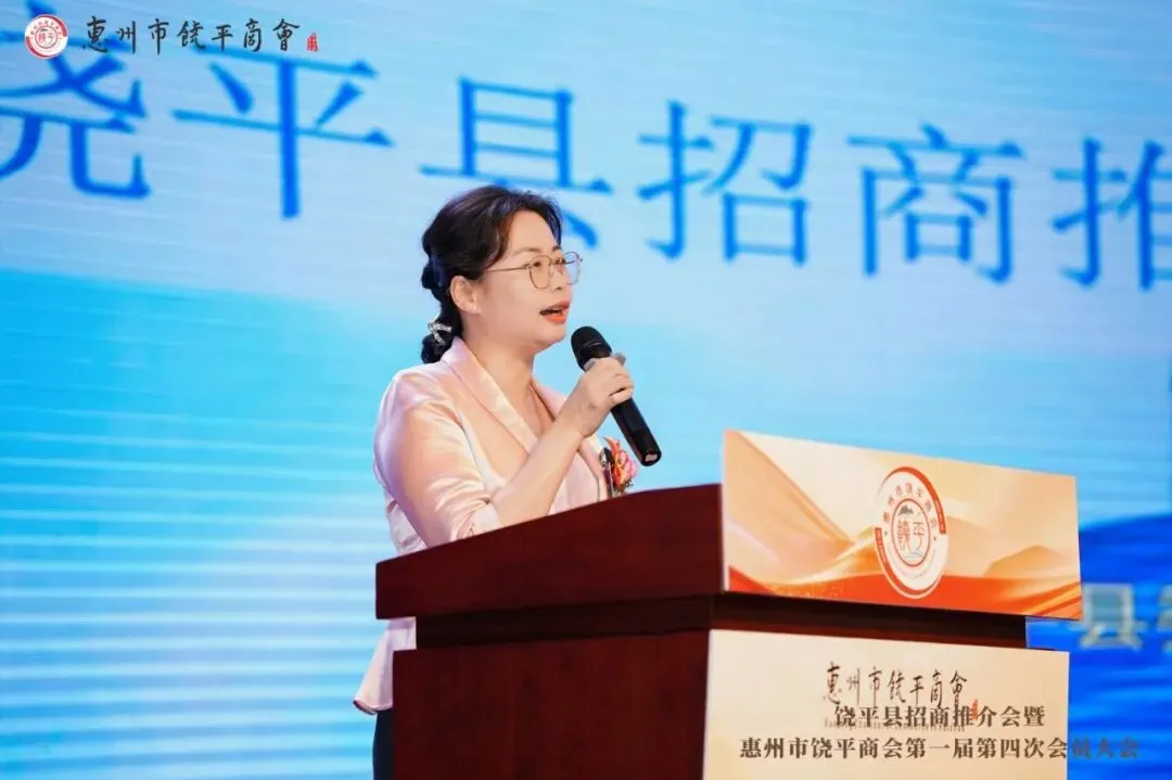 2026年4月19日下午,饶平县招商推介会暨惠州市饶平商会第一届第四次会员大会在惠州康帝国际酒店隆重举行。潮州市饶平县委常委、统战部部长陈建娜,惠州市工商联秘书长、四级调研员何华等领导出席活动。我会会长方创荣,监事长严炳鹏,常务副会长方国为,秘书长方汉烈,党支部书记方惜芳一行应邀出席大会,与各界嘉宾齐聚一堂,共话发展。 大会在庄严的《中华人民共和国国歌》中拉开序幕。气势如虹的潮汕英歌舞首先登场,为大会活动营造“潮味十足”的文化氛围。 惠州市饶平商会会长王文才致欢迎辞,执行会长姚城彬作2025年度理事会工作报告,监事长肖国辉作2025年度监事会工作报告。 惠州市工商联秘书长、四级调研员何华讲话,充分肯定惠州市饶平商会成立以来发挥桥梁纽带作用,寄语其带动饶籍企业家深耕惠州、回报家乡。 饶平县委常委、统战部部长陈建娜作“机遇之城,未来可期”招商推介,详细介绍饶平县的投资环境、区位优势和优惠政策。她表示,今天的饶平,正以开放的胸怀、创新的姿态,向各位发出诚挚的邀请,欢迎各位企业家朋友走进饶平、了解饶平、投资饶平,共同书写高质量发展的新篇章。饶平县委常委、统战部部长陈建娜作“机遇之城,未来可期”招商推介 大会现场播放了惠州市饶平商会特制短片《一封家书》,颁发了体育顾问,新增常务副会长、副会长、理事及会员牌匾,并为商会发展作出贡献的人员颁发了荣誉牌匾。 在互赠礼品环节,我会方创荣会长代表商会与惠州市饶平商会互赠礼品,并热烈祝贺大会取得圆满成功。 本次大会以“潮涌鹅城,情系饶邑”为主题,还安排了丰富多彩的文艺表演及丰富的抽奖活动。展望未来,惠州市惠来商会愿与惠州市饶平商会携手共进,共谋发展。