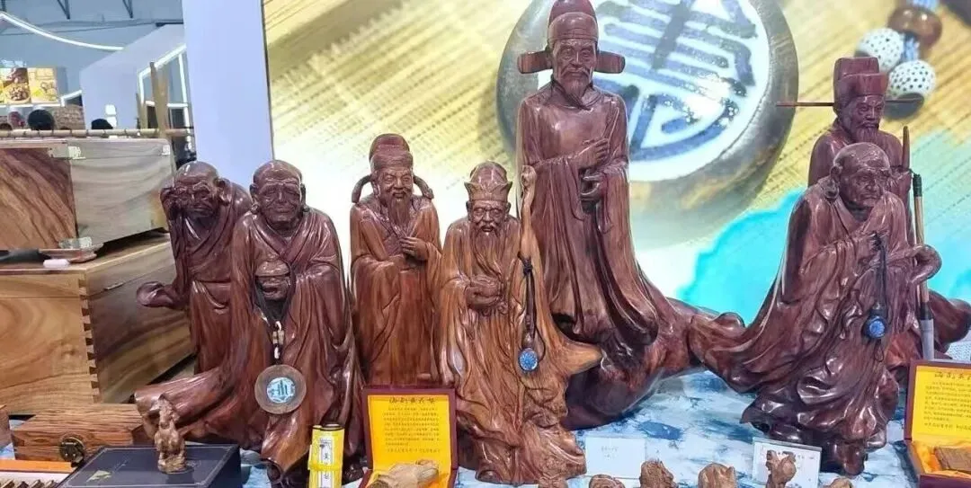 精选海南黄花梨等珍稀木料,镶嵌景德镇千年老瓷片,一刀一刻,一瓷一木,复刻传统神韵,创新当代美学……消博会上,抚州市非物质文化遗产神佛木雕传承人于杨青携《海瑞》《唐宋八大家》《木瓷结合文创作品》等系列代表作亮相展会,作品以海南黄花梨、沉香木、紫檀等珍贵木料为材,刀工细腻、形神兼备,既传承东乡木雕的千年底蕴,又融入现代艺术表达,将江西山水人文、赣鄱精神融入方寸木料。展台内,原木纹理与精湛雕工相得益彰,吸引海内外客商驻足品鉴、洽谈合作,成为江西展区人气焦点之一。