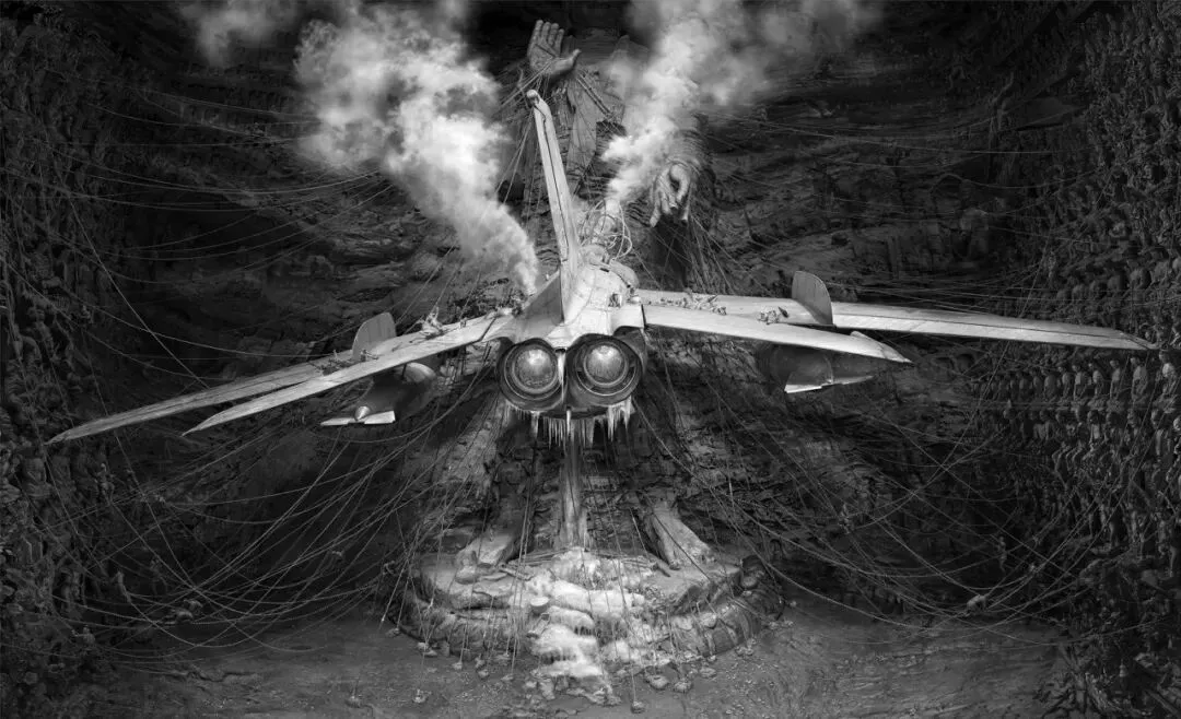 • 张兰坡 (Zhang Lanpo): 作为文明遗骸的解剖者,其新作《以一贯之》以史诗般的视觉张力,将工业残骸(战机)与微观肉身并置。他测绘的“历史的刻度”:在“一”与“众”的博弈中,揭示人类在宏大叙事下周而复始的宿命感与无力感。