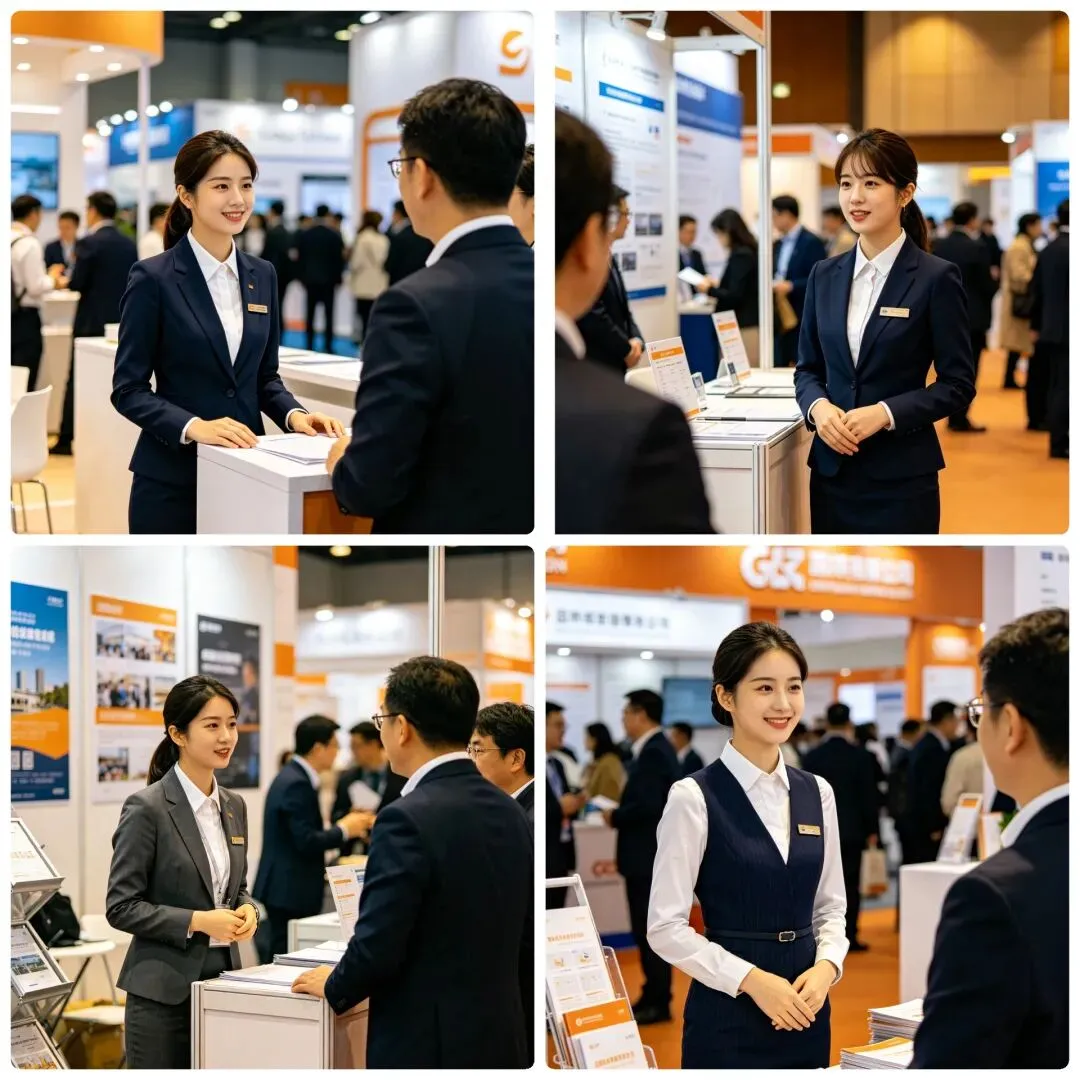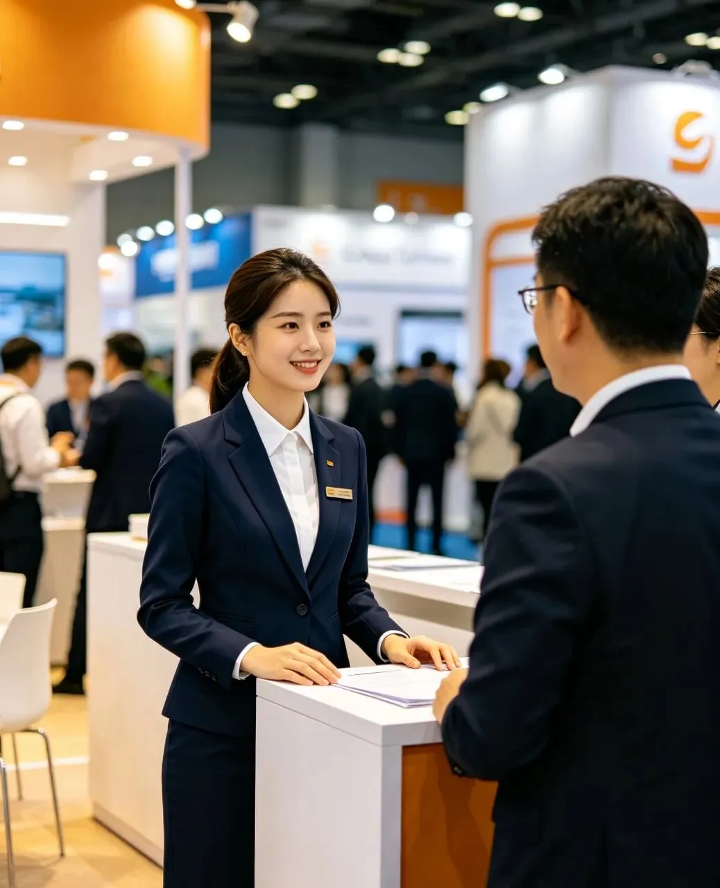 我的工作岗位在会展中心正前方,负责会场咨询与人员指引。看似简单的工作,做起来却一点都不轻松。展会期间人流量极大,每天都有无数参会者、参展商前来询问:某个会议室怎么走、论坛几点开始、哪里可以领取资料、洗手间在哪个位置……面对重复又琐碎的问题,我必须始终保持微笑,用清晰温和的语气耐心解答。
