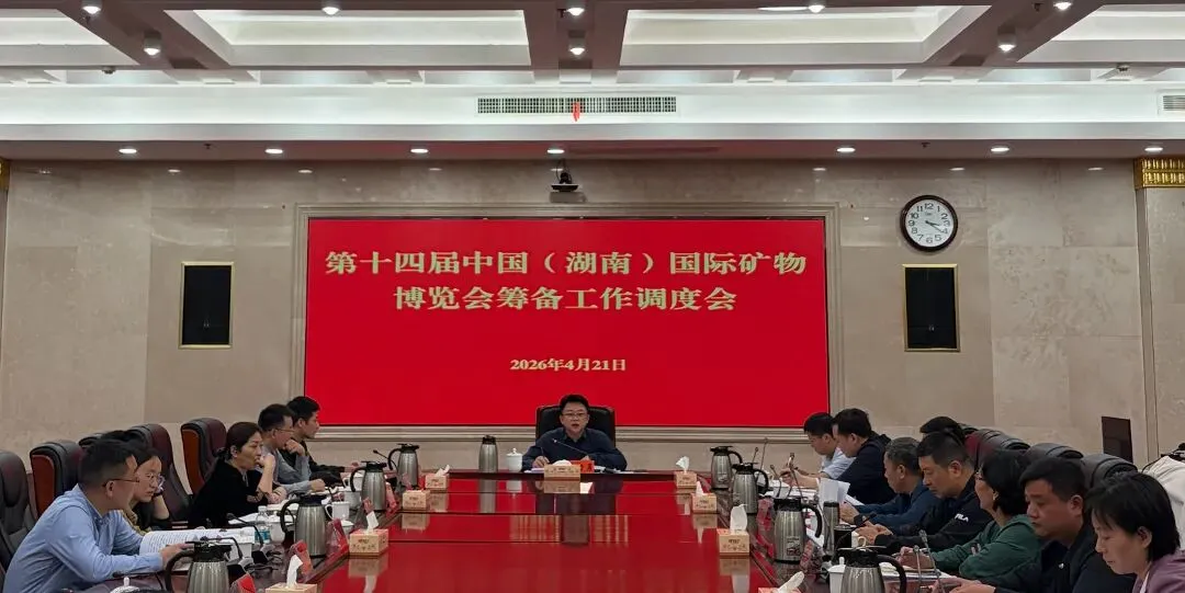 2026年4月21日下午,郴州市人民政府副市长唐力勇在市政府第一会议室主持召开第十四届中国(湖南)国际矿物宝石博览会筹备工作调度会,全面调度展会筹备进展,研究解决突出问题,部署下一阶段冲刺攻坚任务。市直相关单位、各县市区及相关企业负责人参加会议。