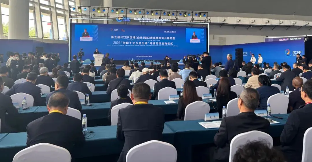 4月20日上午,第五届RCEP 区域(山东)进口商品博览会开幕式暨2026“侨助千企万品出海”对接交流启动仪式在临沂国际博览中心隆重举行。活动汇聚全球资源,搭建合作桥梁,为推动区域经贸合作、助力侨企与山东企业协同出海注入强劲动力。