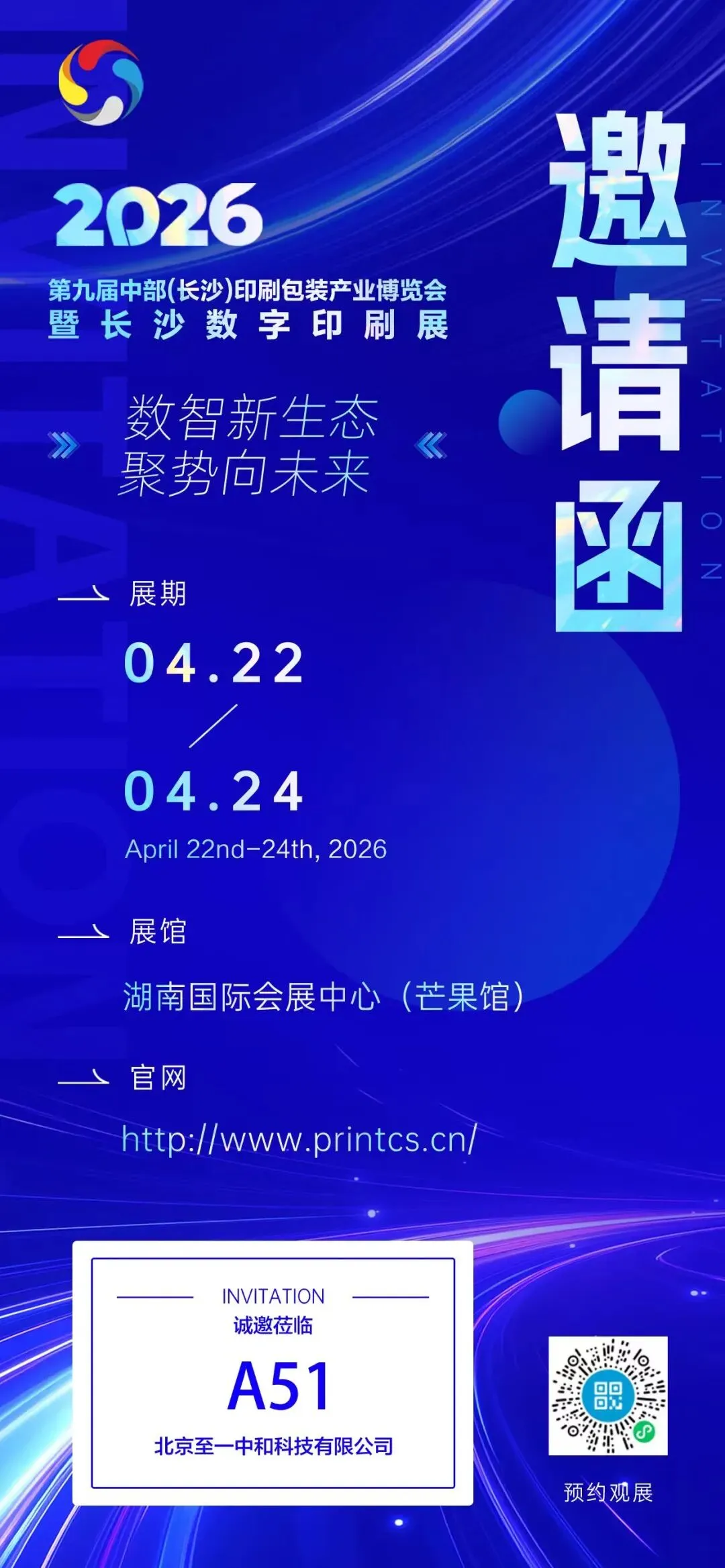 第九届长沙印博会·至一科技A51展位,恭候您的光临。