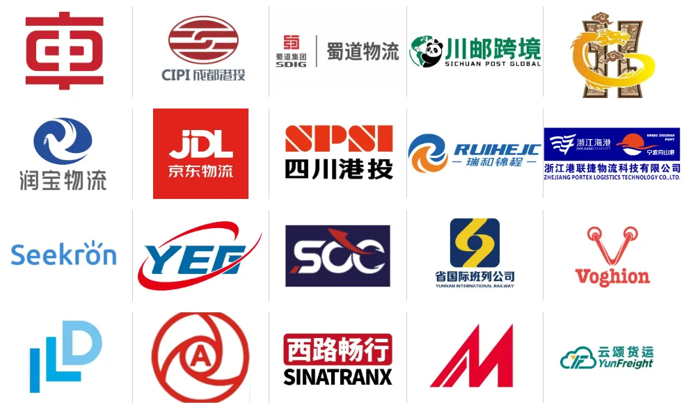 成都国际铁路港、郑州中豫物流、新疆陆港、云南国际班列、中国中车、四川港投、浙江海港物流、中国邮政速递物流、京东物流、安吉物流、蜀道物流、福田货运汽车等悉数登场。