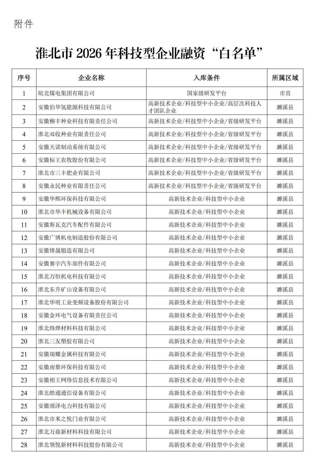 741家!淮北市2026年科技型企业融资“白名单”公布!