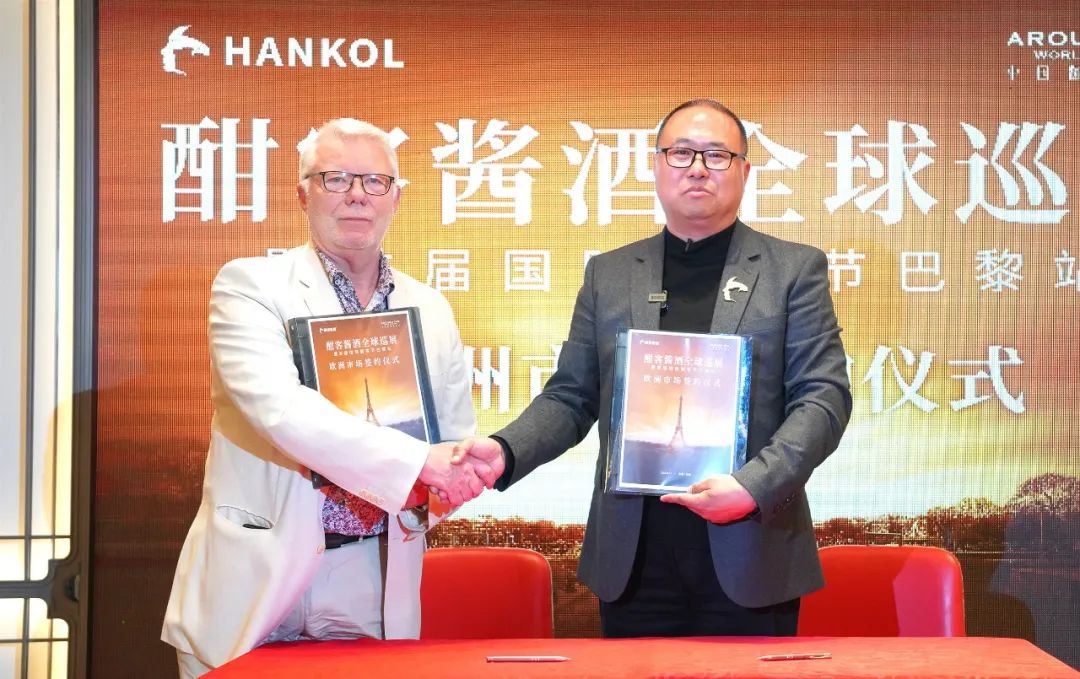 图 “中国酱酒世界行”收官之作“酣客酱酒全球巡展暨首届国际酣客节”法国Blanc Mesnil 市副市长Karim Boumedjane,法曼尼国际酒业董事长、法国法中酒业协会主席、法国江西商会会长王亚青,法国国家铁路公司经济学家、现借调法国总理府战略与展望总署高级专家、中国旅法工程师协会前会长倪金城出席会议并致辞,为“中国酱酒世界行”取得的圆满成果表示祝贺,并为“国际酣客节”的成功举办送上鼓励与祝福。活动现场还举行了酣客君丰欧洲市场签约仪式,这意味着酣客酱酒正式在欧洲大陆扎根落户。