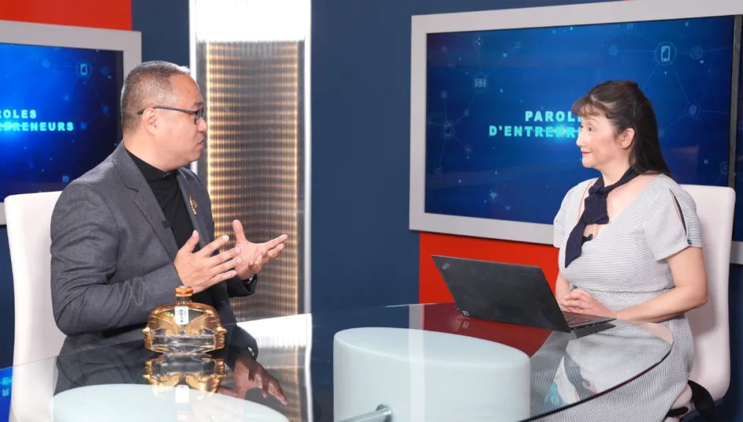 图 欧洲卫视台长Camille CHEN对酣客君丰创始人王为进行了深度专访法国华人进出口商会成立于2001年,是法国华侨与当地政府及国内侨务部门沟通的重要平台。此前,王为携“中国酱酒世界行”团队参访法国华人进出口商会时,商会会长黄小杰及执行会长黄学云都表示高度赞同酣客君丰的“重做”理念,黄学云会长尤其强调,当下海外华人也在进出口贸易上面临一定的难题,思考并实践“企业家重做与行业重做”,非常有必要。