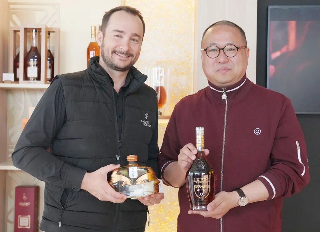 图 酣客老王与Boinaud家族第24代传承人Remy·Boinaud合影Alexis先生是法国干邑区知名酒庄Croizet的第六代传承人。他在不久前因“中国酱酒世界行”结识王为之后,一见如故、引为知己。此次国际酣客节举办前夕,他专程驱车5个多小时赶往巴黎,带着精心挑选的酒礼与王为约见并共话佳事,还作为嘉宾参加“首届国际酣客节”并盛赞酣客品质,再续中法两国酿酒人的情谊。