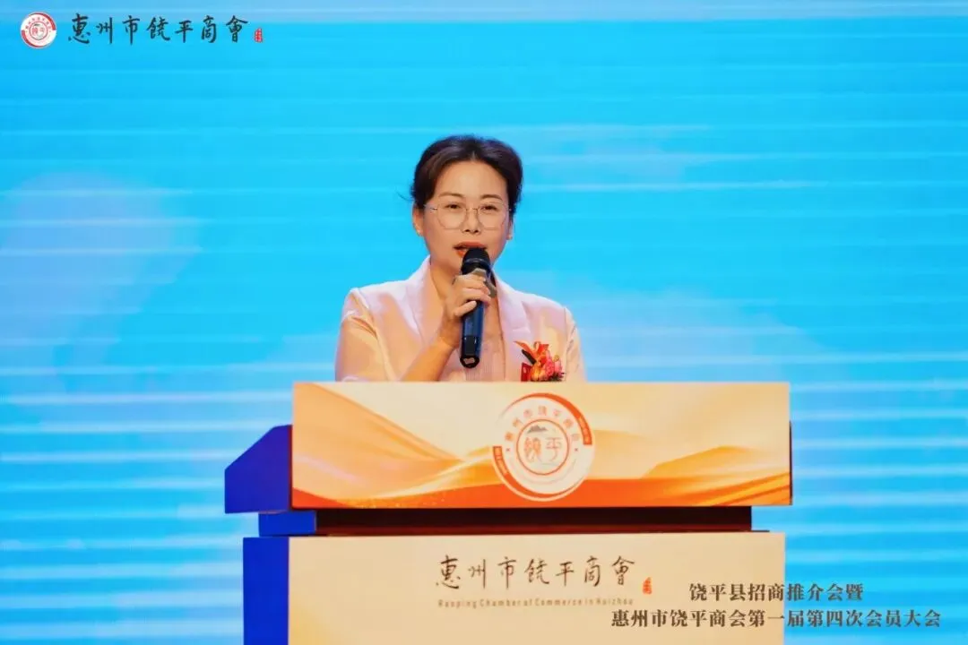 饶平县委常委、统战部部长陈建娜在讲话中,首先对惠州市饶平商会大会的召开表示祝贺,向在惠州打拼的饶平乡亲致以问候,肯定了商会过去一年在服务会员、对外交流、公益慈善及返乡投资等方面的突出成效。随后,她围绕饶平的发展成果、区位优势、园区建设、营商环境等作了详细的招商推介,全面介绍了十大工业园区建设情况及五大重点招商方向,以及饶平公平的市场准入、全周期的企业服务、低成本的生产成本等优越营商环境,期盼各位乡贤、企业家多宣传推介饶平,并诚挚邀请大家组团返乡考察,共促饶平发展。最后,她希望惠州商会持续加强团队建设,搭好交流平台,做好服务保障,多为会员企业纾困解难、助力转型升级,实现共赢发展。