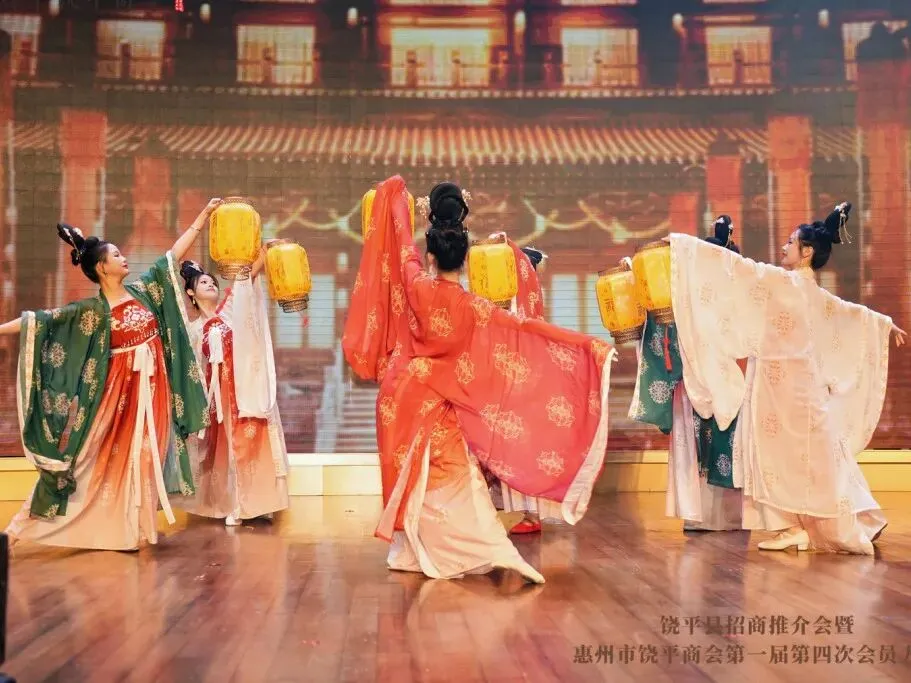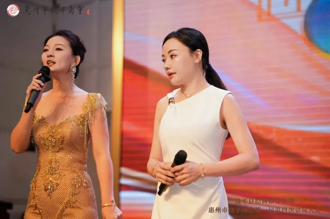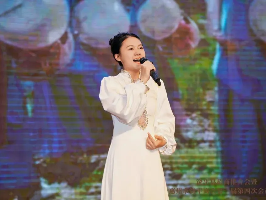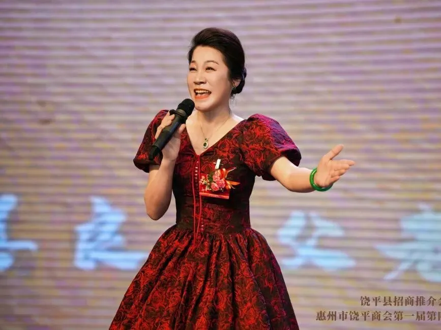多位优秀饶平籍歌唱嘉宾登台献艺,歌声婉转,情暖全场。特邀深圳警备区文工团合唱团声乐导师麦珊珊献上女声独唱《父老乡亲》《春天的芭蕾》;特邀原广州军区政治部文工团饶籍男高音歌唱家林小冰倾情献唱《春风十万里》,并在晚会尾声带来歌伴舞《乘风破浪再出发》;乡贤歌手许美华带来女声演唱《长鼓敲起来》。