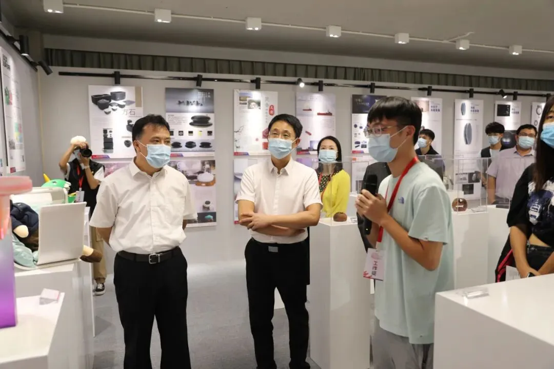 开幕式后,校领导和师生代表参观了设计展,认真听取了指导老师和主创者对作品的介绍。