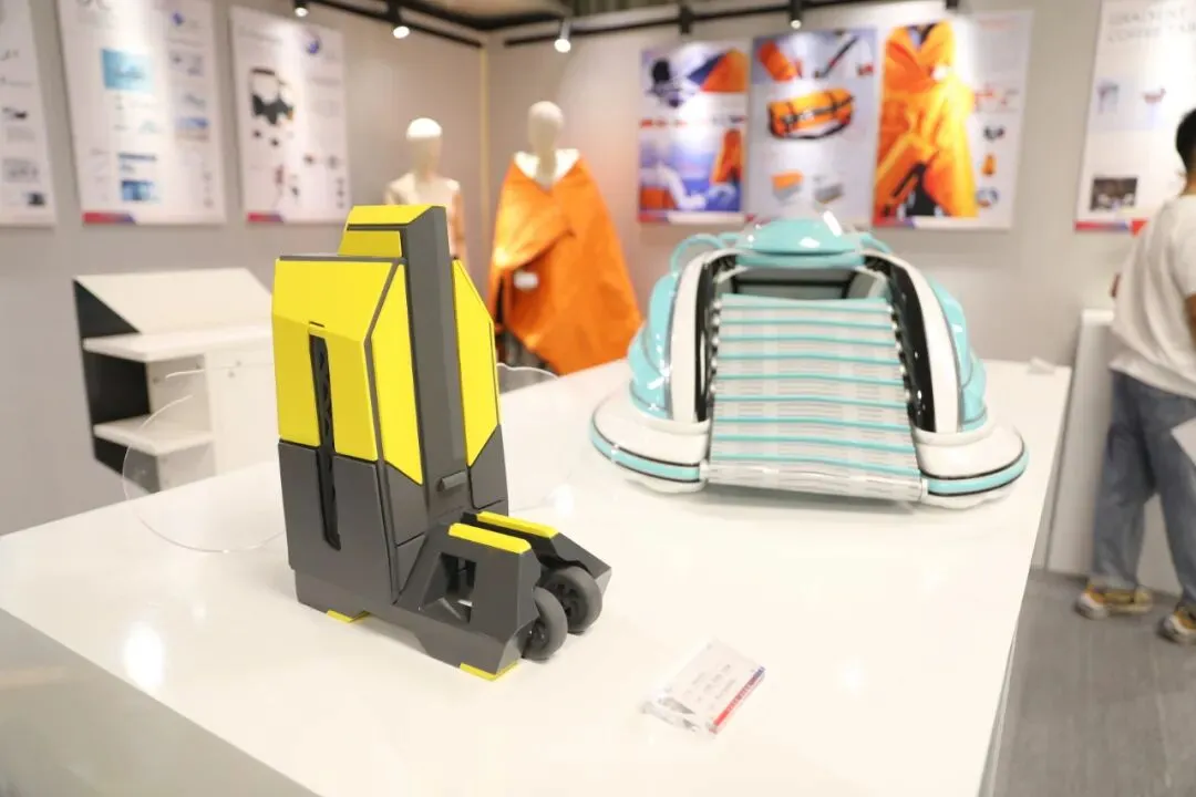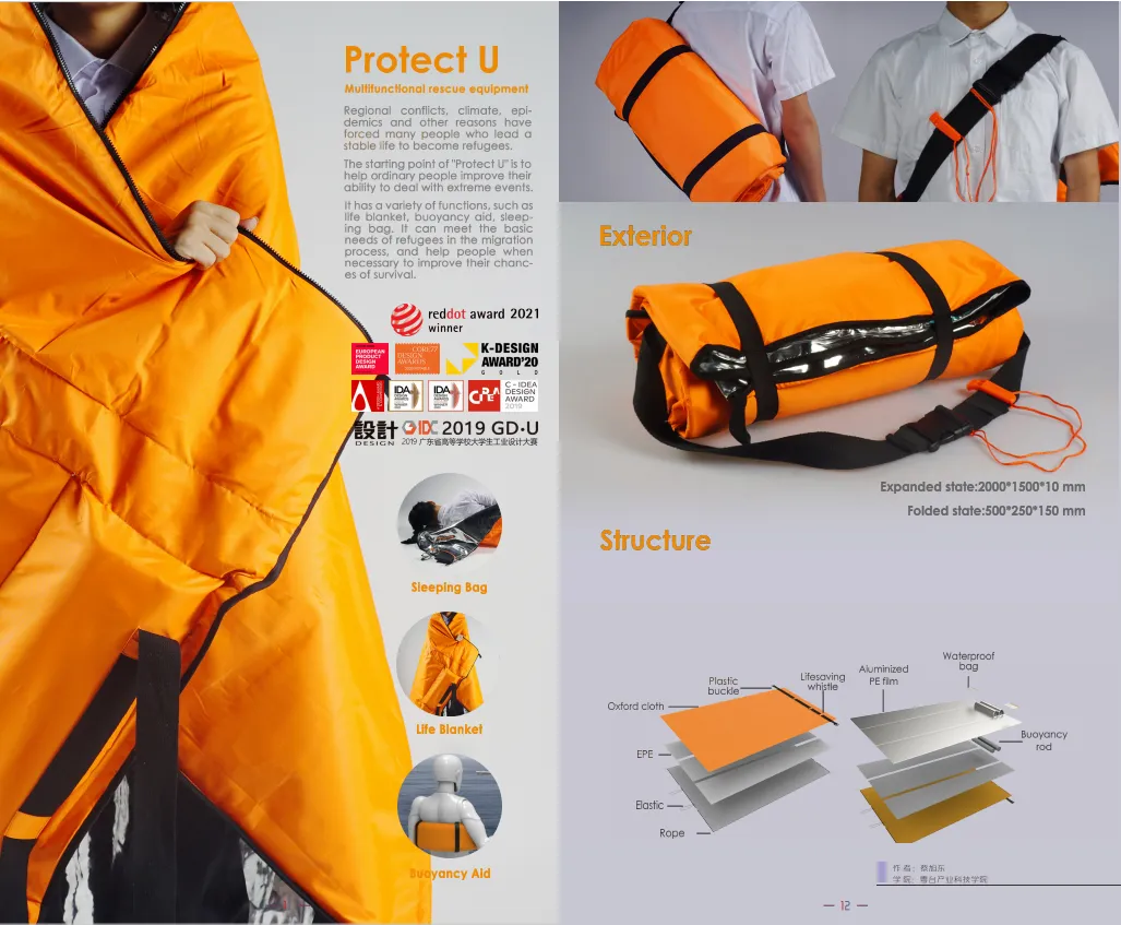 在工业设计单元,同学们关注设计如何更好服务于人。粤台产业科技学院蔡旭东同学创作的作品《多功能应急救援产品——Protect U》,让产品设计不仅满足功能需求,更注重于人本,这件获得“红点奖”的精品即是通过精巧的设计,让器物的功能拓展、用途延伸,充分体现了尊重生命、关怀人性的设计理念。