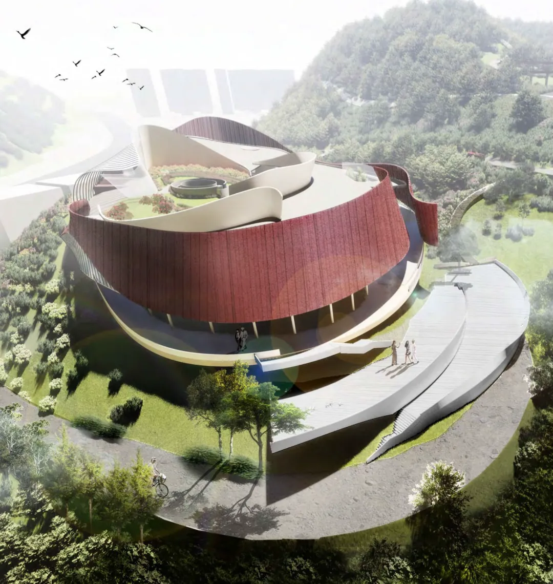 为了纪念郑毓秀同志为革命和平权教育等事业奋斗一生,生态环境与建筑工程学院的张锐斌同学设计了“福田安托山艺术公园暨郑毓秀纪念馆”。他结合郑毓秀生平的历时性与共时性的活动以及当时的处境,营造出不同的展厅空间,让人们在不断变化的空间中感受到其人生的起伏变化,营造出共情空间。