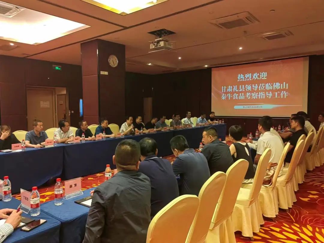 2023年5月8日下午,佛山市甘肃省商会执行会长张宗平带队,执行秘书长赵文强、秘书吕伟刚同行受邀走访副会长单位,并出席了礼县招商考察团座谈会。陇南市礼县县人大常委会主任苏志强一行27人,佛山市秦牛食品有限公司董事长王亚云、总经理贾张锋、采购部副总经理康国、公牛事业部经理郑伟、母牛事业部经理王海云、后勤部主管叶能参加此次座谈会。