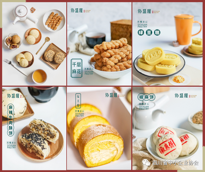 协会会员单位成都协盛隆食品有限公司始于光绪初年,2019年在成都衣冠庙重新开业,现工厂位于成都市郫都中国川菜产业园。协盛隆糕点源于宫廷技艺,素以选料严谨,工艺精致,品质优良著称,是成都川式糕点中的精品。