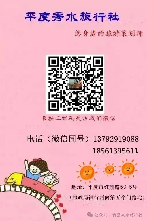 免责声明:部分文章和图片来源网络,其原创性以及文中陈述的文字和内容未经本公司核实,对文章以及全部或部分内容、文字、图片的真实性、完整性、及时性本公司不作任何保证和承诺,请读者自行参考并核实。部分文章和图片的原始作者或版权所有人如有异议,请联系本公司删除。宣传和广告内容不构成青岛秀水旅行社有限公司要约邀请或承诺,青岛秀水旅行社有限公司在中国法律许可范围内有权作出调整而不另行通知。产品具体内容以最终签署合同时为准。