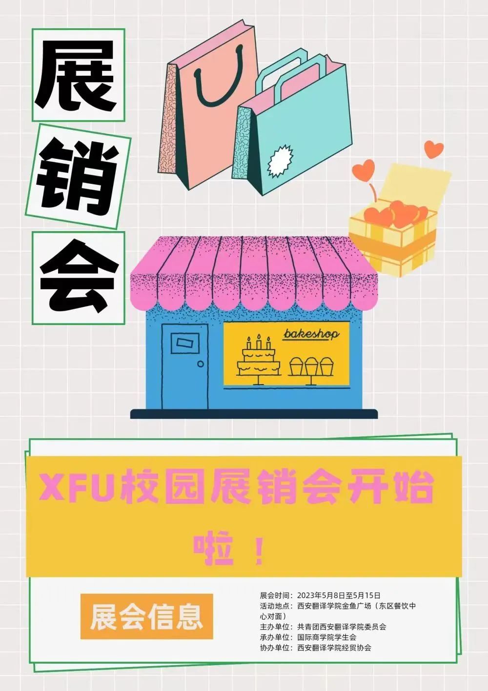 时间:2023.5.15-5.19地点:西安翻译学院金鱼广场(餐中对面)