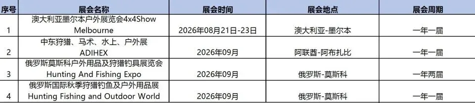 2026年全球狩猎户外展会计划表