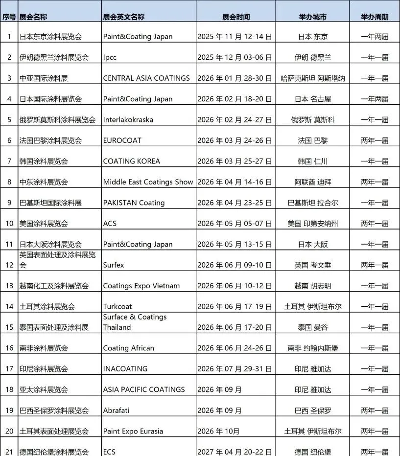 2026年全球涂料展会计划表