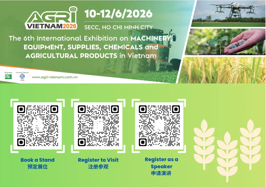展会热度持续升温!Agri Vietnam 2026 将于2026年6月10–12日在胡志明市 SECC 举办,汇聚来自亚洲、欧洲及东盟地区的农业企业与行业机构,共同呈现现代农业全产业链解决方案。