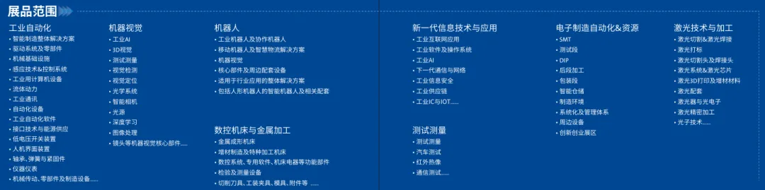 本届展会深度整合工业生态核心板块,重磅推出:工业自动化展、机器视觉展、激光技术展、数控机床与金属加工展、机器人展、新一代信息技术与应用展、工业互联网展、测试测量展、CMM电子制造自动化&资源展在内的八大主题展区,以"纵向深化、横向贯通、立体呈现"三大维度重构工业展会新范式:纵向聚焦各细分领域最前沿技术突破,横向构建跨领域协同创新的产业生态,立体化呈现从单点技术到系统解决方案的全维度创新图谱,以专业深度赋能产业升级,以创新广度驱动智造未来,打造工业技术发展的风向标。两大品牌母展,持续注入优势资源