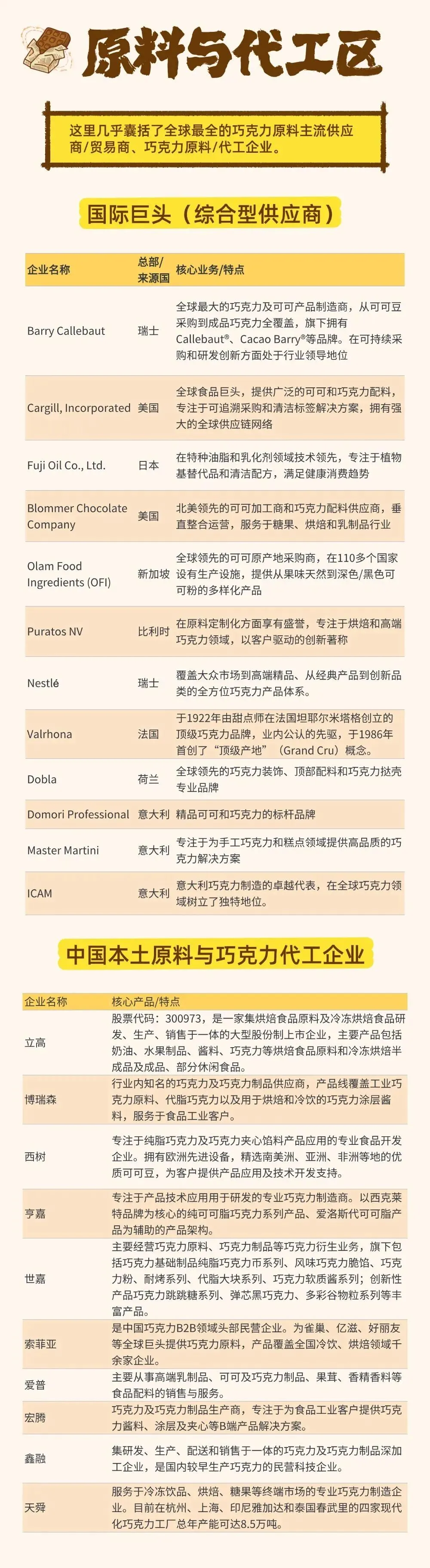 *以上企业名单与品牌为不完整列举,更多相关原料、设备等巧克力品牌陆续发布中...
