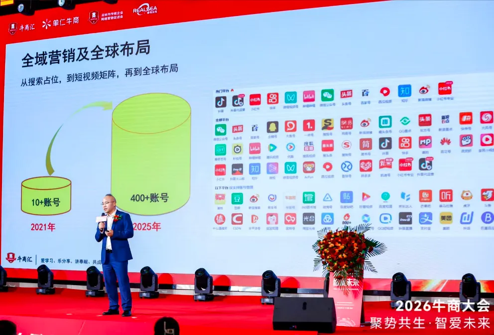 随后,AI开始爆发,这个细分领域受到关注,也进来了大量的玩家,传统搜索的成本不断上涨,我们协助睿海光电开始了全域矩阵的布局,包括全球多语种、多平台的内容体系建设跟账号覆盖。