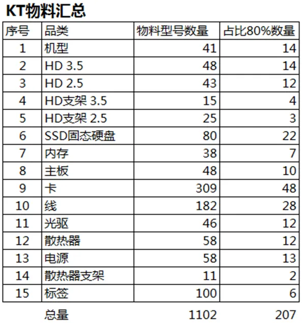物料数据汇总如下: