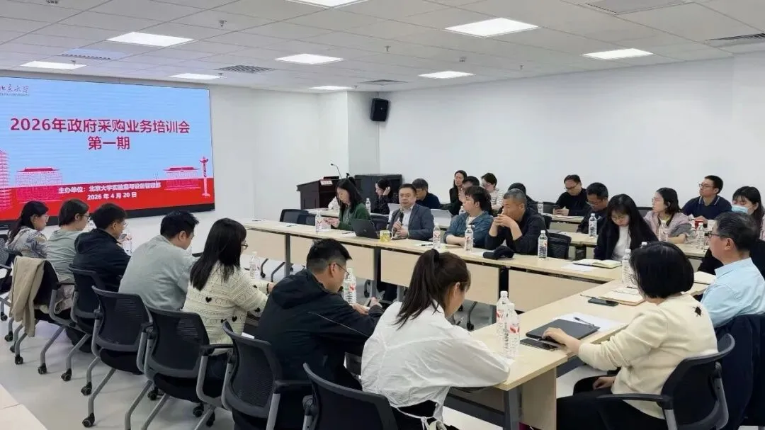 2026年4月20日下午,实验室与设备管理部在燕园大厦933会议室成功举办第一期政府采购业务培训会。本次培训旨在进一步规范采购流程、提升相关人员的业务能力与合规意识,由实验室与设备管理部副部长周勇义主持,各院系、校级科学仪器公共平台及相关职能部门共40余位采购负责人与一线教师参与。