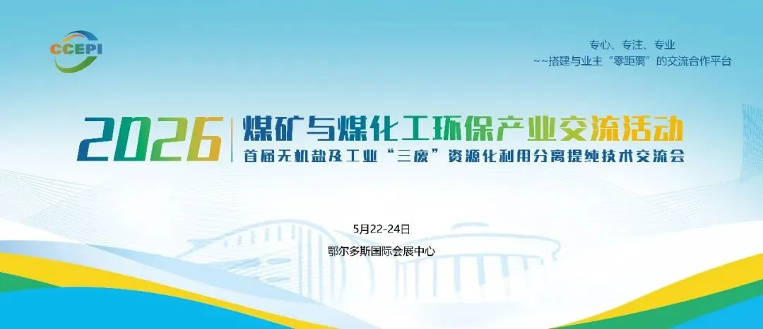2026煤矿与煤化工环保产业交流活动将于5月22-24日在鄂尔多斯举办,聚焦三废治理、节能降碳、资源化利用、生态修复等议题。