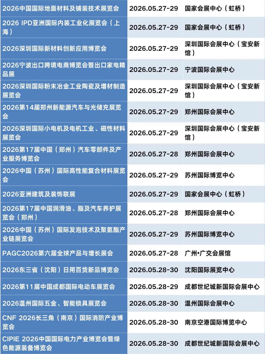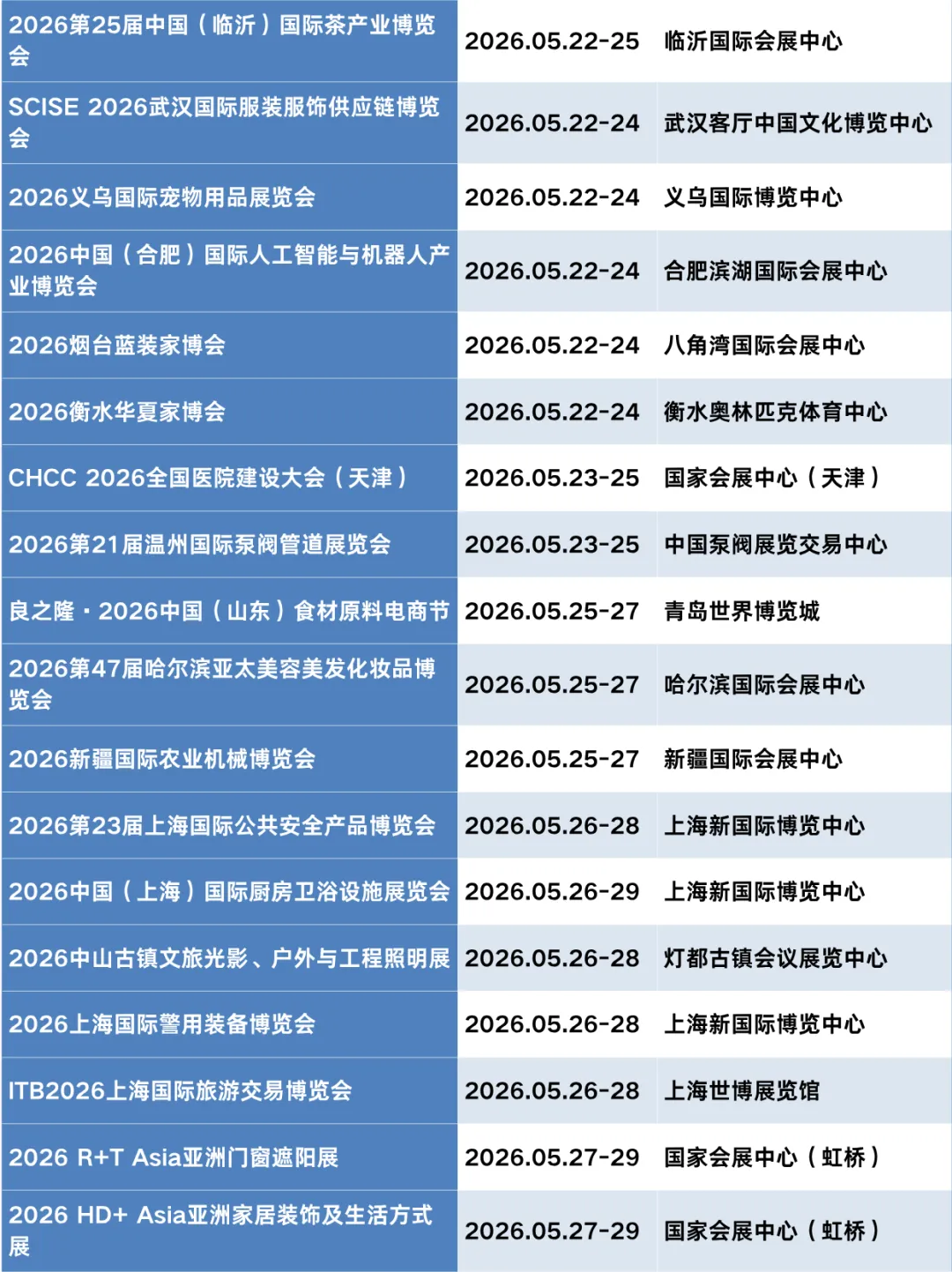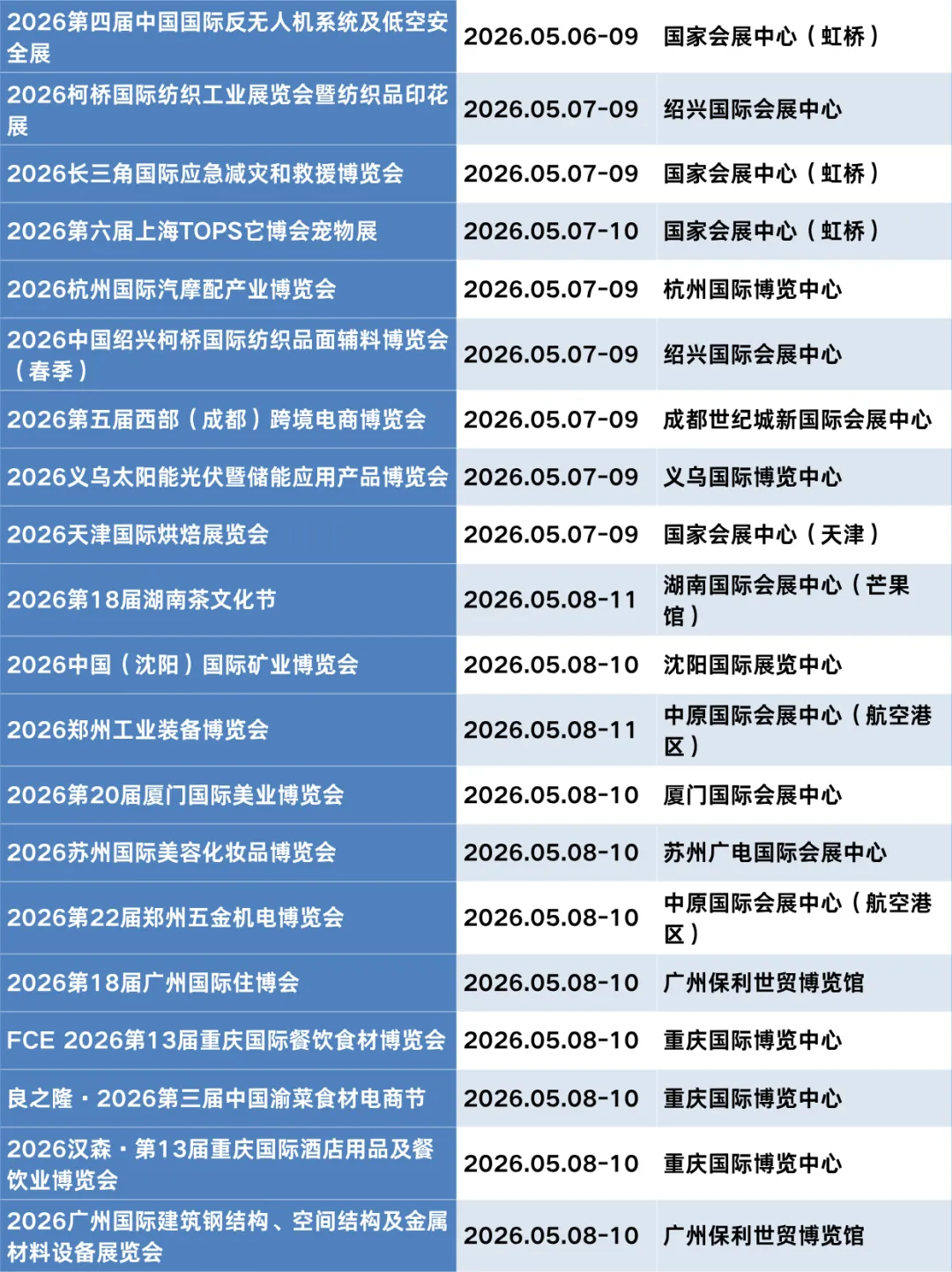 以上展会来源于官方和网络,活动内容真实有效,有需要看展的小伙伴,可以通过关注公众号报名观展,展会举办时间和地点具有一定变更风险,请以收到的电子门票凭证为准,平台也将为预订门票的用户提供电话、短信通知提醒,避免用户出行损失。