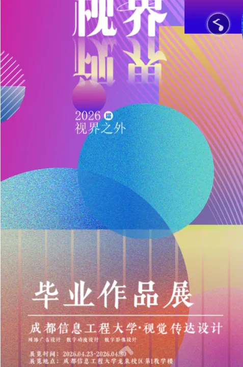 亲爱的同学们,视觉传达设计专业将在4月23-30日于成都信息工程大学龙泉校区第一教学楼展开毕业作品设计的展览。欢迎大家前来观看!