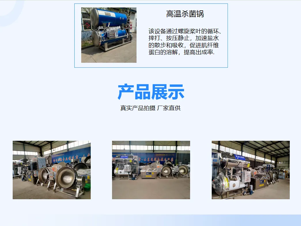 1、蒸煮:通过连接锅炉或者蒸汽发生器产生蒸汽导入炉内对产品进行一次加工。