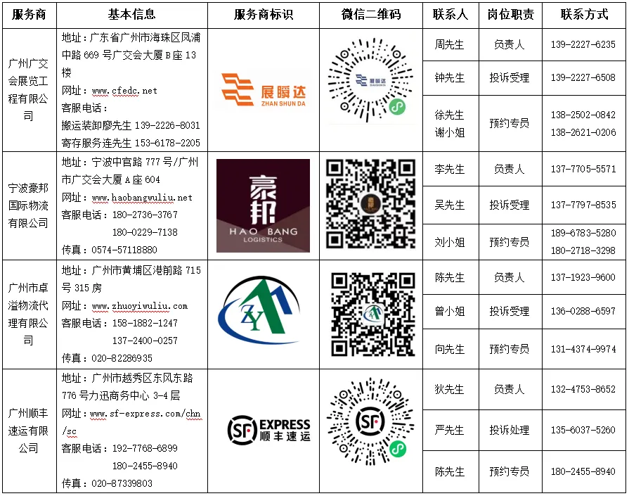 (一)广交会出口展驻馆搬运及展品综合服务商名单及信息