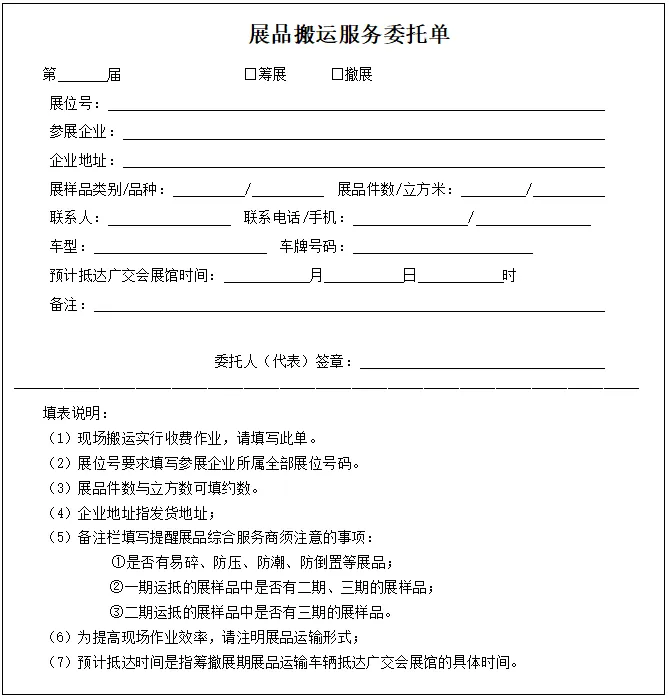 (8)参展商寻求搬运服务前应做好下列准备工作: