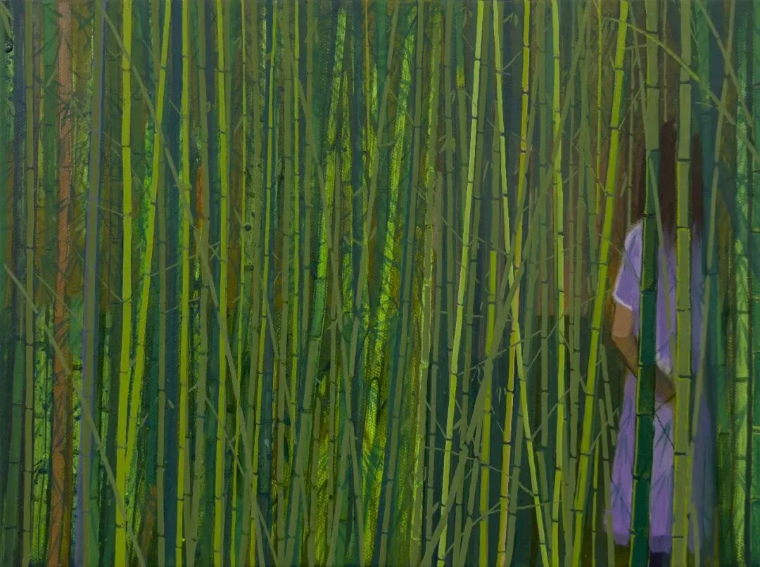 《竹林趣事》,李非凡,布面丙烯、油彩,30x40cm,2025