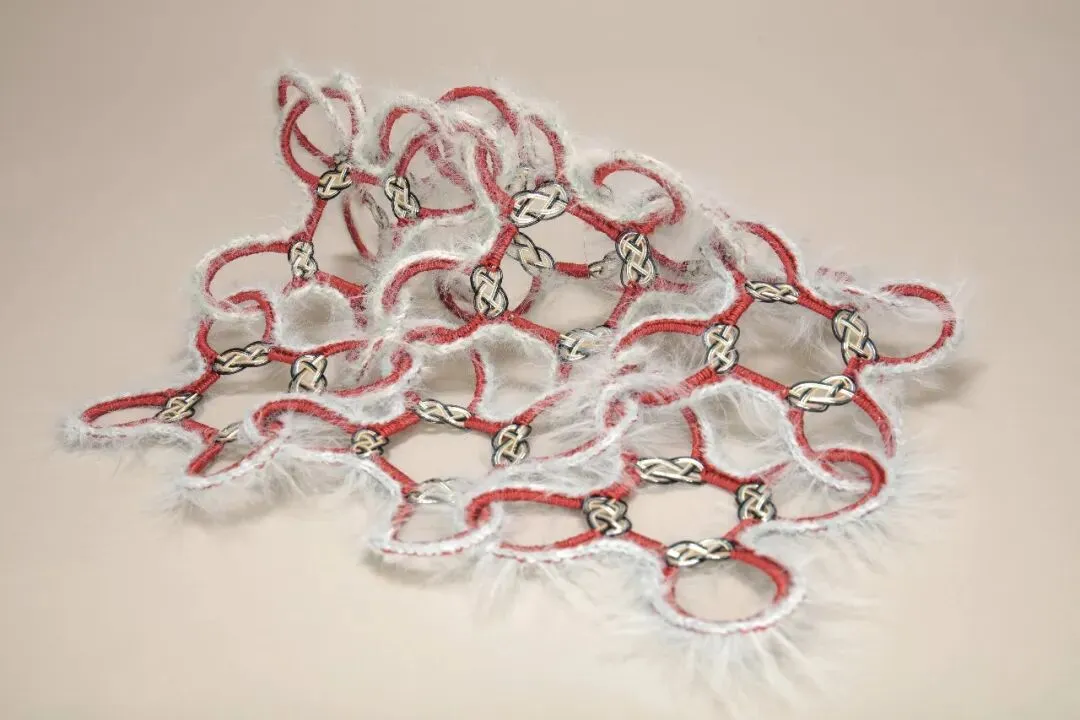 《窗棂花影一绳结编织系列》,手工绳结编织,27x27cm,2022