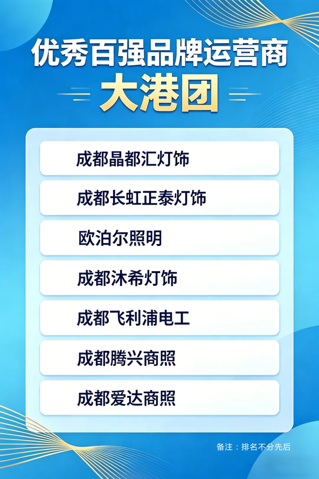 值得庆贺的是,本次展会中,大港灯饰城参展的7户灯饰商家凭借过硬的实力与良好的行业口碑,荣获【优秀百强品牌运营商】大港团殊荣!