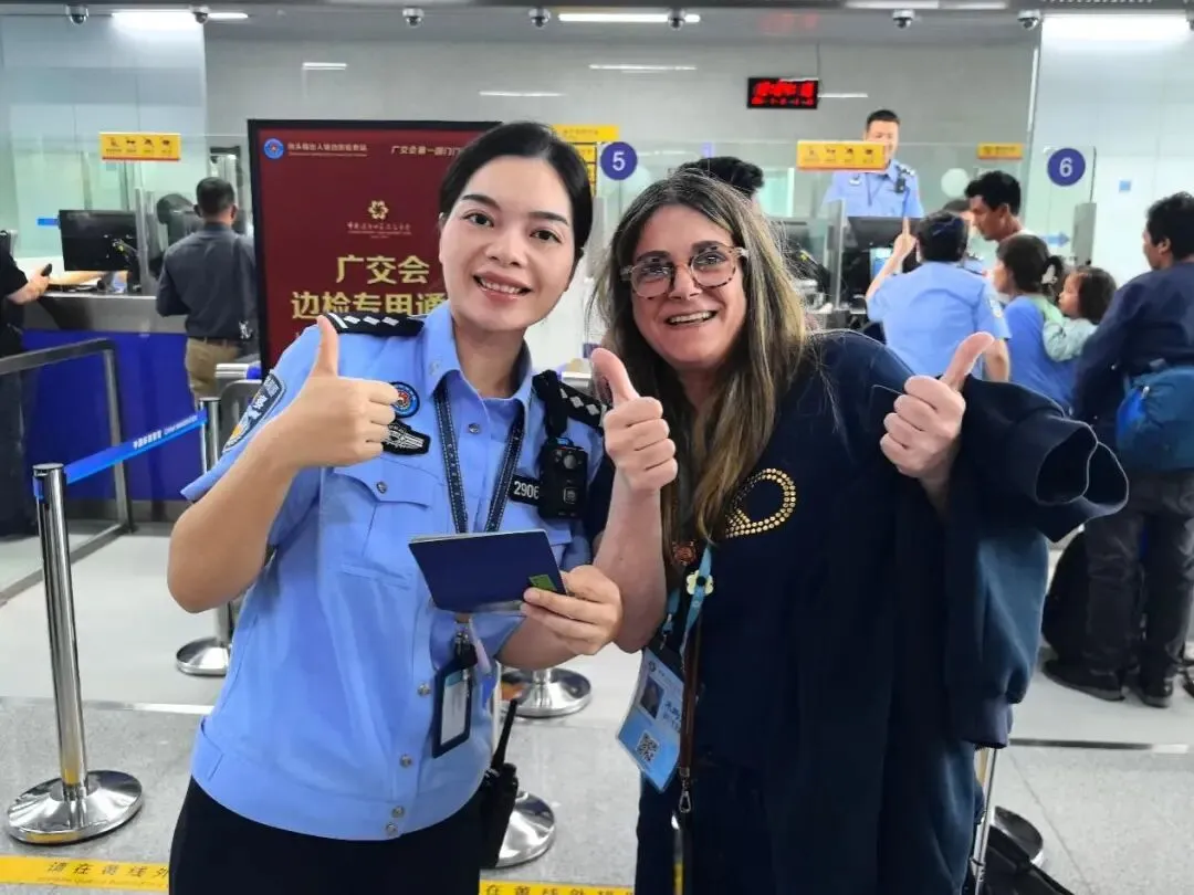 每一届广交会都是全球客商汇聚的盛会,高效、顺畅、安心的通关体验,是国门服务的重要体现。面对往来频繁的中外旅客,洲头嘴边检站女民警石孟始终以耐心、细心、责任心坚守岗位,及时化解旅客难题,守护旅客跨境出行的安心。