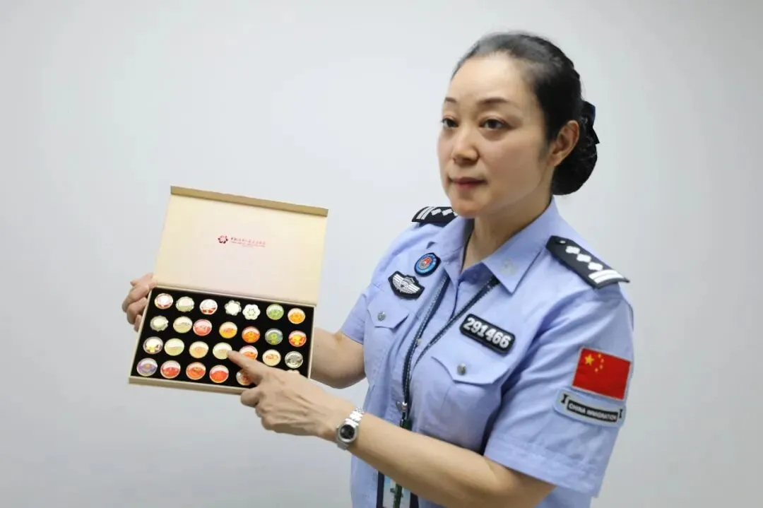 李媊珍藏着一盒广交会纪念徽章,每一届盛会的徽章她都妥善收好,这些徽章见证了她严守国门底线、践行执法担当的历程。2024年,她转战仅百米之隔的琶洲口岸,岗位虽变,护航广交会的初心未改。三尺验证台前,她高效验放旅客;出入境大厅里,她耐心指引服务。