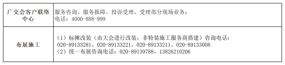 提供标准展位拆改、展具出租、水电安装、加班申请、备案资料补录文字制作、电话业务、网络接入、收费及开具发票、退押金等服务。
