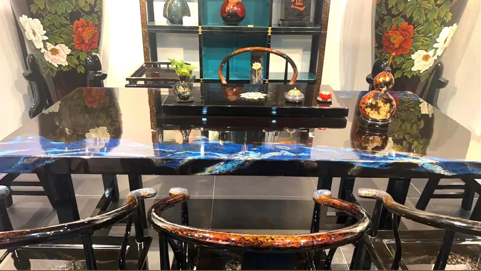 企业曾承接个性化大漆茶桌、茶椅、漆柜等定制