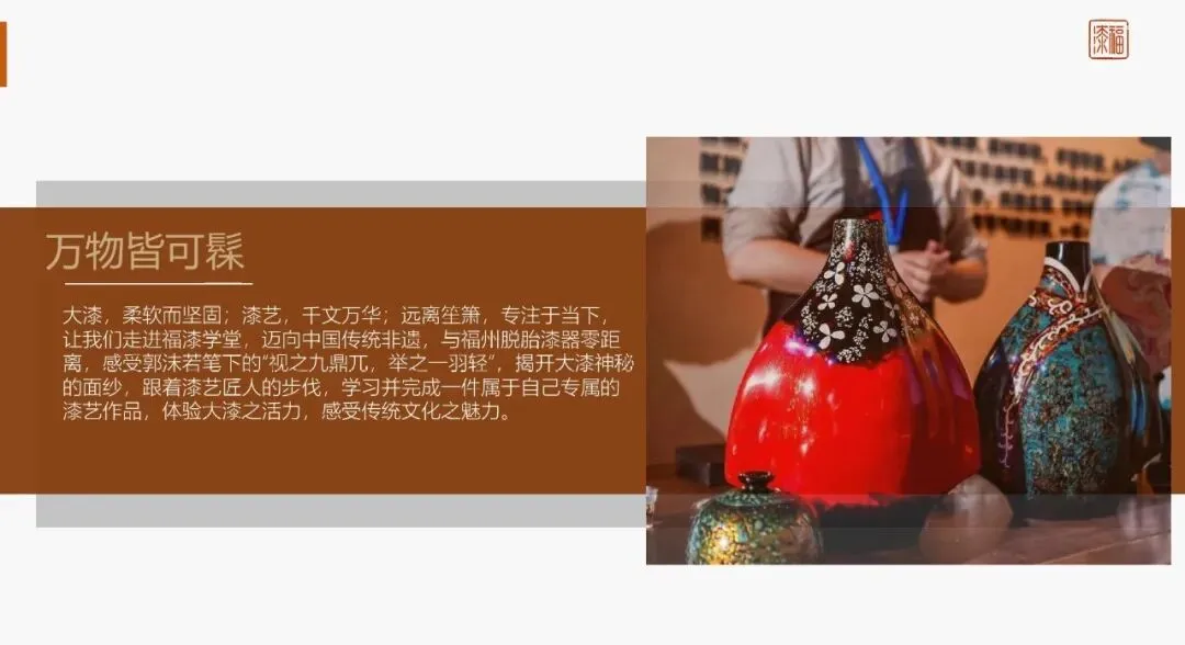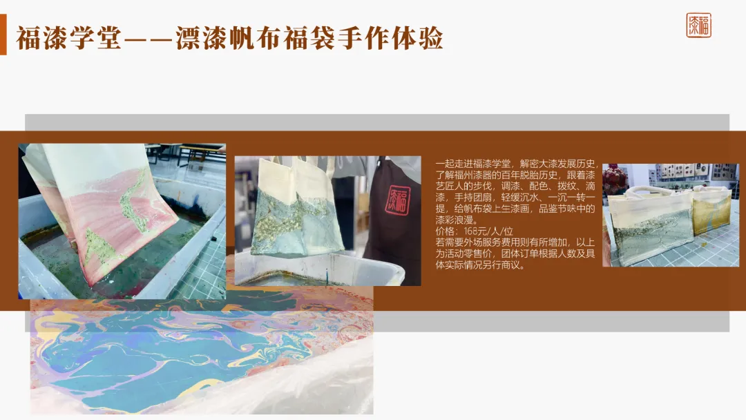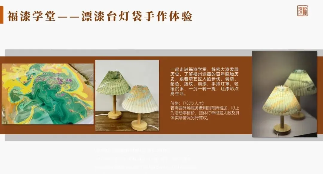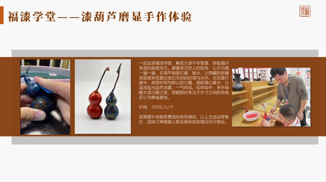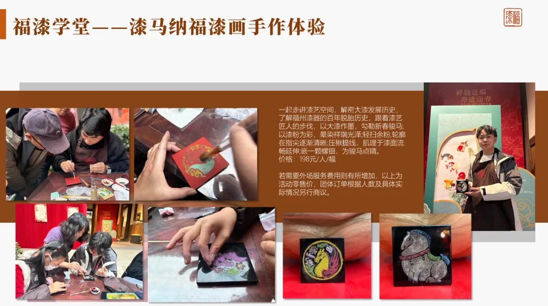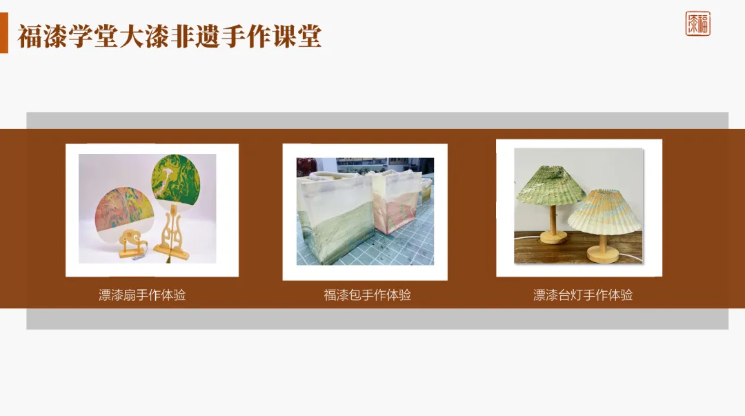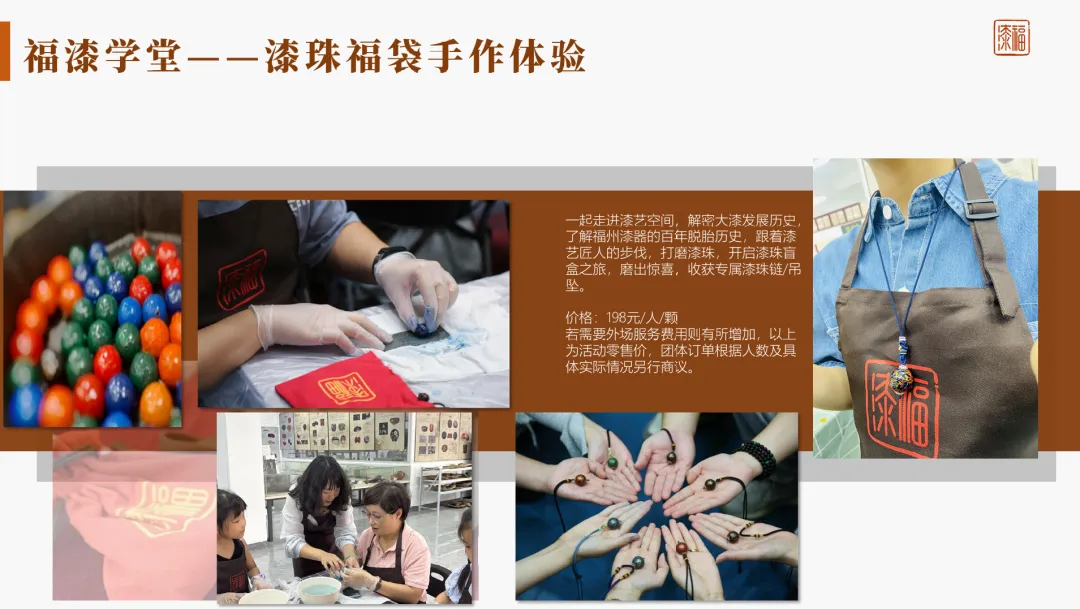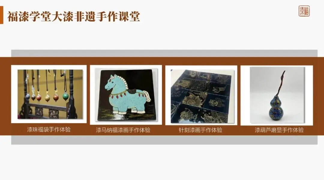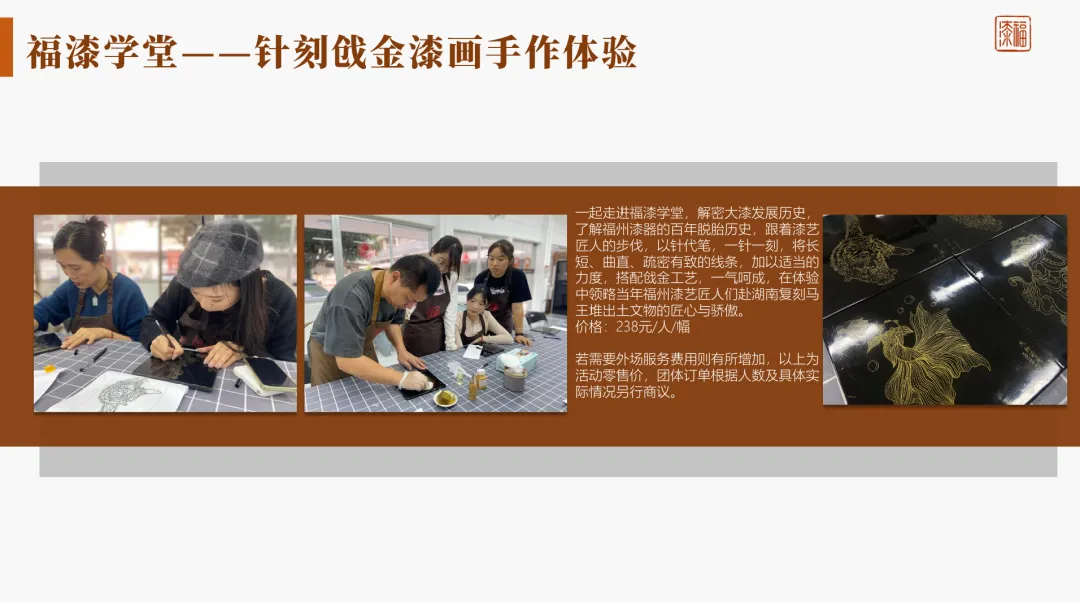• 漂漆系列手作体验 • 漆珠福袋手作体验 • 针刻戗金漆画手作体验