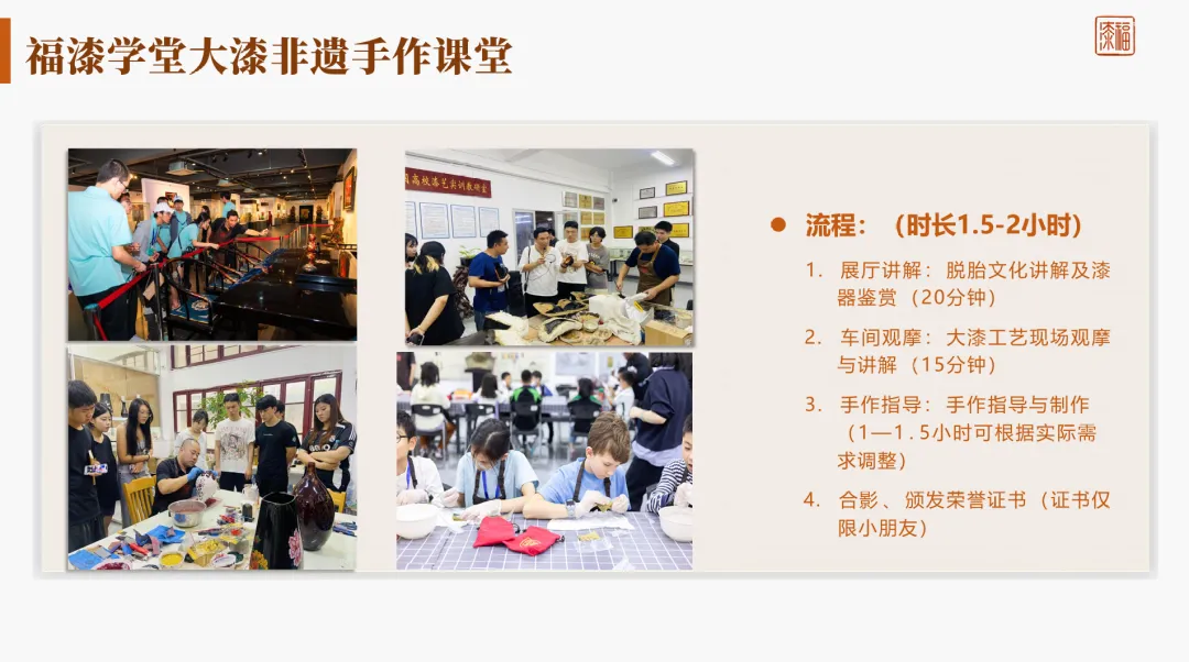 进阶课程:专题研习(如大漆髹饰、金箔镶嵌等)