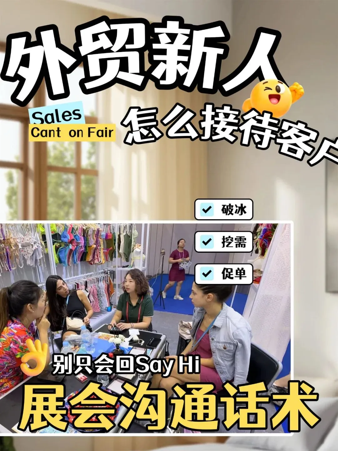 其实展会成交的核心,不是“说得多专业”,而是“聊到客户心坎里”。整理了以下实战话术,从破冰、挖需求到逼单、收尾全场景覆盖,附英文对照,新手也能直接用——