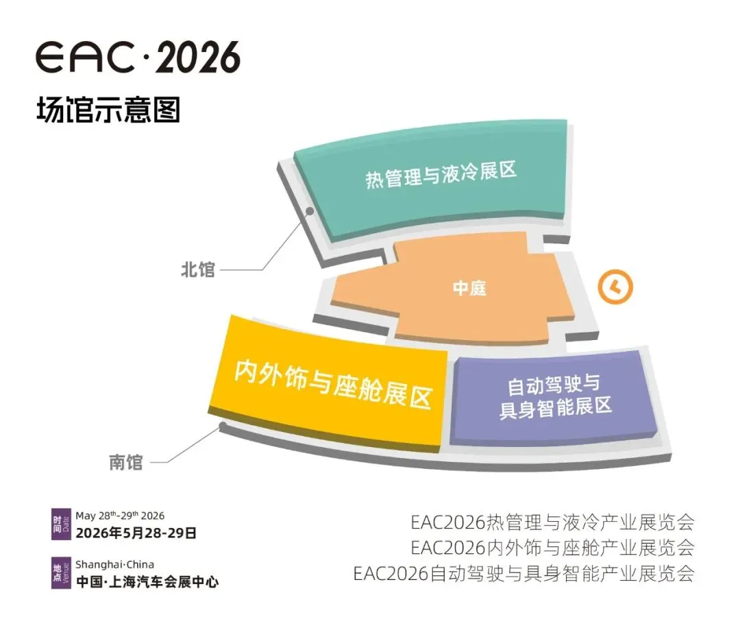 EAC2026 内外饰与座舱产业展览会,将于2026年5月28日至29日在上海汽车会展中心举办。本届展会汇聚国内外头部企业与创新力量,集中展示汽车内饰系统、外饰部件、智能座舱方案、车载电子、环保材料、表面处理、轻量化技术、加工装备等前沿产品,精准链接研发、设计、生产、采购全渠道资源。30+垂直细分专场论坛,聚焦量产痛点、技术路线、国产化替代、AI融合落地,直接对标前沿方案,干货满满不空洞。