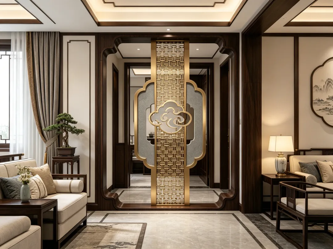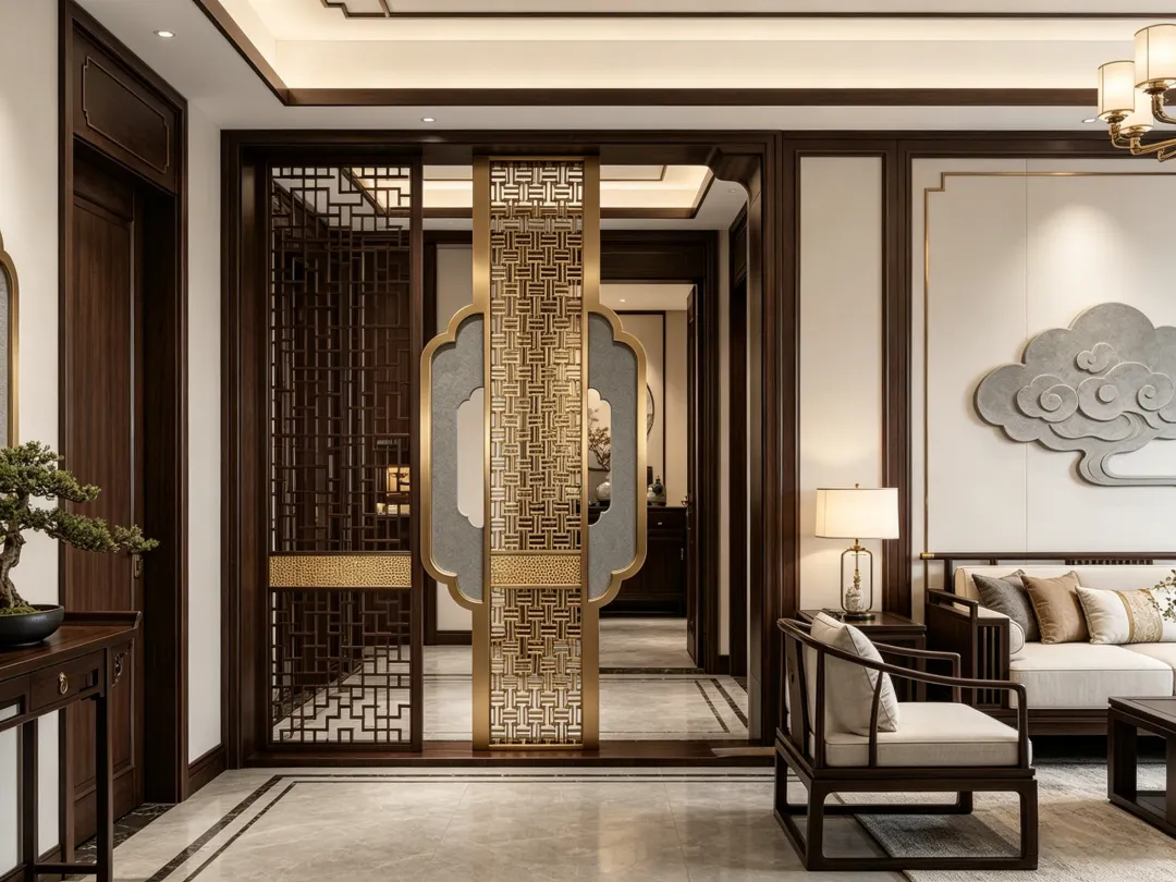 这款新中式隔断是传统元素现代化应用的标杆设计:它精准抓住了新中式风格的核心 ——“取其意,去其形”,没有照搬传统隔扇的复杂造型,而是提炼核心文化符号,用现代的材质、极简的造型、高级的配色,打造出兼具文化底蕴、美学价值与实用功能的作品,完美适配当代空间的需求。