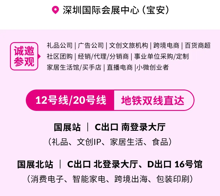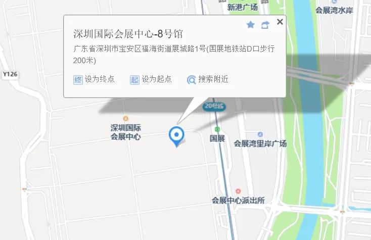 12号线/20号线国展站C1/C2口,国展北站D口,直达深圳国际会展中心。