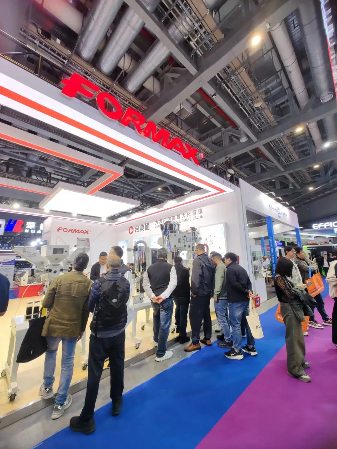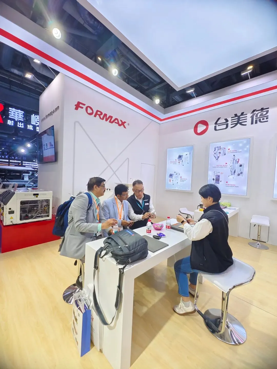 专业技术团队与销售人员以饱满热情,为到访客户详细演示设备操作、解析技术优势、分享行业应用案例,并针对客户个性化需求提供定制化自动化解决方案。首日便达成多项意向合作,充分彰显了台美德在塑辅领域的品牌影响力与市场竞争力。