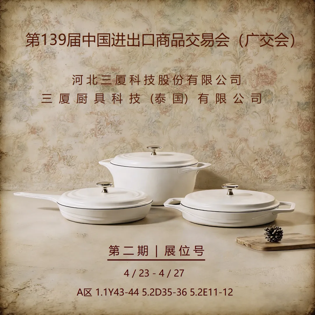 倒计时1天,第139届中国进出口商品交易会(广交会)第二期将于2026年4月23日在广州琶洲会展中心拉开帷幕。届时,三厦将携多款高端优质及独具工艺特色产品重磅亮相。期待与您相约广交会,共赴精彩,共赢未来!